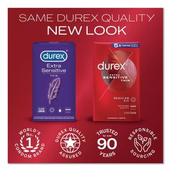 Durex® Extra Sensitive™ Condoms are ultra-thin latex condoms that give you the intimate feeling of skin-on-skin contact. These condoms are thinner than our standard condoms while providing the protection you need. Each condom for men is 100% electronically tested for strength, flexibility, reliability and features a pleasant scent. For maximum benefit, carefully follow the condom instructions on the inner side of this package. Helps provide protection against pregnancy, HIV/AIDS and other sexually transmitted infections (STIs).