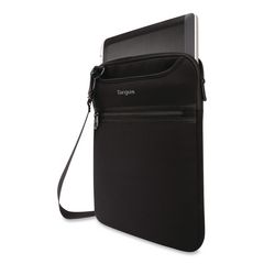 Ramp up your versatility and your protection! The Targus® 12" slipcase can be used three ways. This cushioned neoprene slipcase has retracting, hideaway handles and a removable shoulder strap, so you can carry it as an over-the-shoulder bag or by the handles. To use it as a sleeve, just remove the shoulder strap and tuck in the handles to slip inside another bag. A front zippered pocket is ideal for holding a charger and small personal items, while an ID holder ensures easy identification. Ideal for work, school or anywhere around town, this sleeve offers the flexibility you want, and the protection you need.